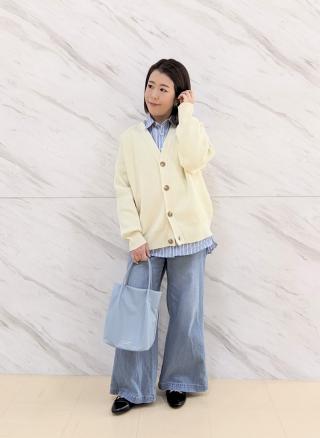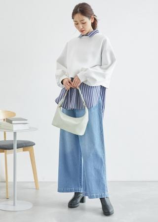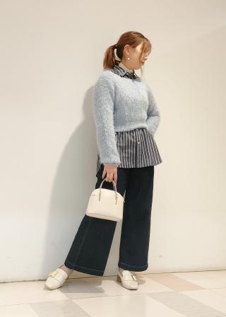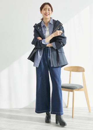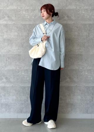・ハイウエストボトムにインしてすっきり着こなすと、通勤シーンにも対応可能。