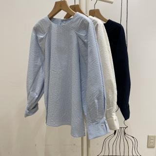 ・切り替えやタックを多用した、ボリュームスリーブがデザインポイント。
