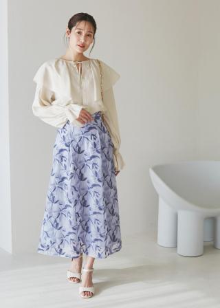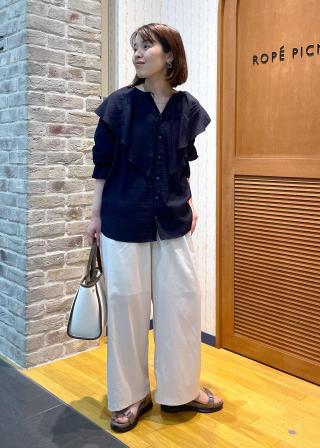 ・分量を持たせた華やかなラッフルカラーが魅力の前開きブラウス。