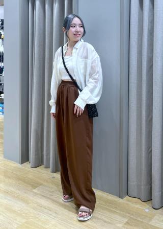 ・クロップド丈が今っぽい、長袖のシアーシャツ。