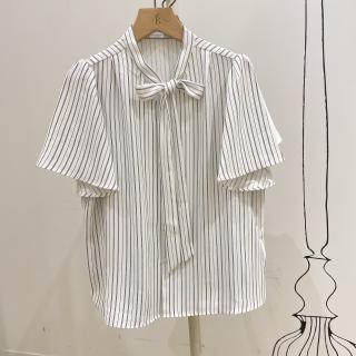 【ご好評につき追加生産&新色追加】サラサラリボンハーフスリーブブラウス
