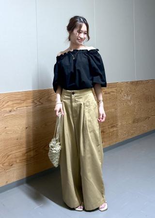 オフショルとして着なくても大丈夫なブラウスで、素材がシャカシャカしていてスカートでもズボンでも合います!!