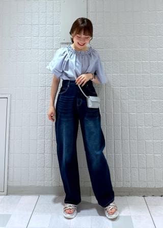 デザインが可愛い感じなので色はブラックを購入。合わせるボトムで少し綺麗めに着こなしています。全体的にゆったりしているので、暑さも気にならず過ごせました。
