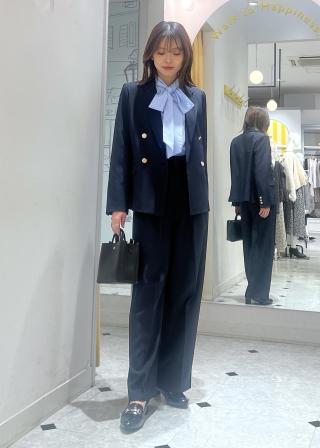 ・ジャケットやカーディガンのインナーとしてリボンを効かせればフォーマルな印象に。