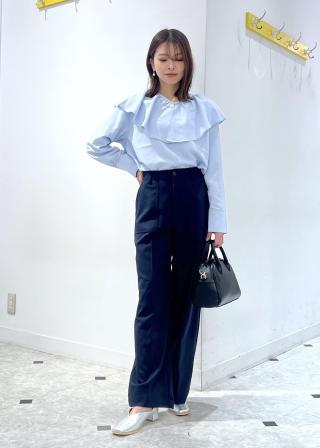 大人の女性も着やすい程よい甘さのラッフルカラーブラウスです♪