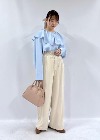 大人の女性も着やすい程よい甘さのラッフルカラーブラウスです♪
