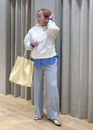 ・ハイウエストボトムにインすると、今っぽいシルエットバランスに。