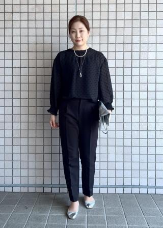 ドットが可愛いブラウス。袖丈が短めだったので低身長の私にもぴったりでした。