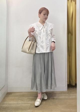 ・肩から身頃にかけてラッフルがあしらわれた華やぎブラウス。