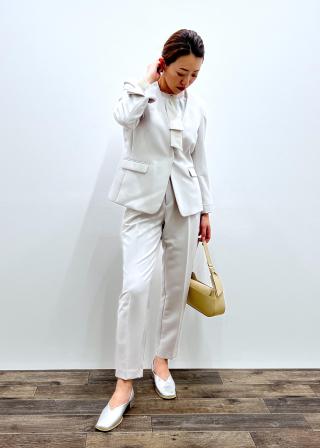 ・パンツルックでマスキュリンな雰囲気を演出し、オフィスカジュアルにも◎。