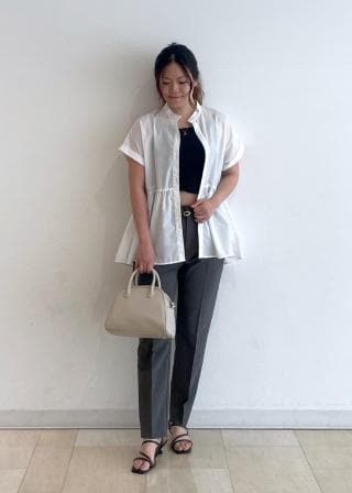 ・シンプルなテーパードパンツに合わせて、きちんと感のあるお仕事着に。