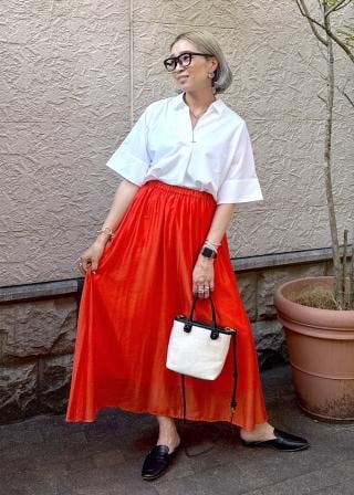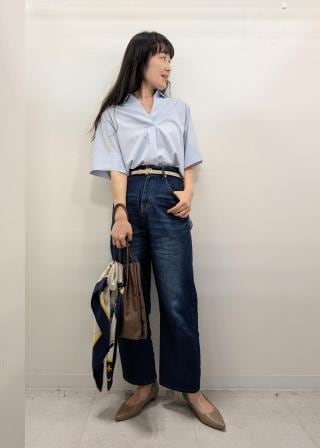 さり気なくふんわりとしたシルエットで体型カバーをしてくれるスキッパーシャツ。