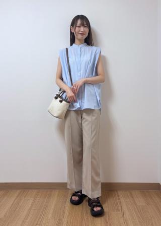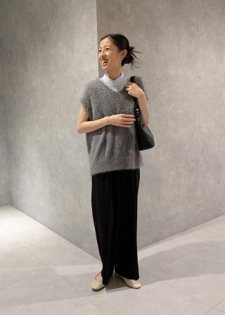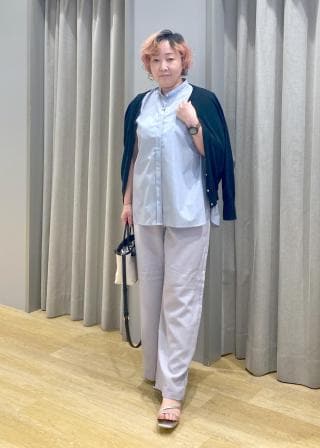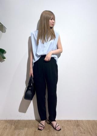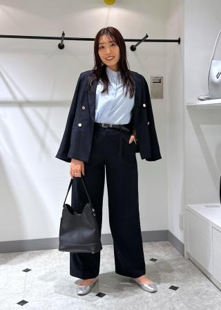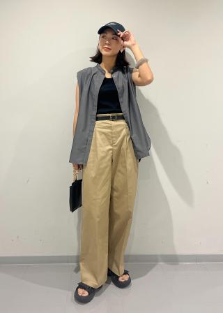 ・タックパンツでウエストをインでオフィスカジュアル/通勤スタイルに。