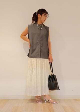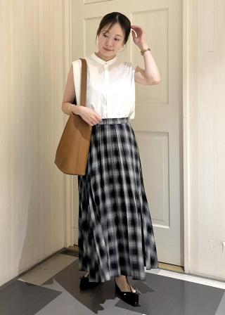 ・アイラインスカートにインして、すっきりきれいめな着こなしに。