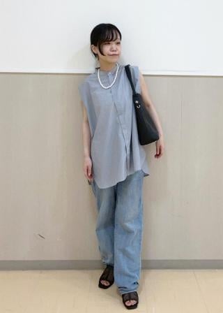 ・シャツの裾をウエストインにすると、コンパクトシルエットになりスタイリングの幅が広がる。