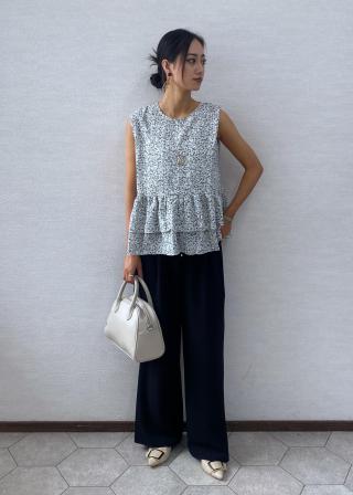 トレンド感なく着られる。夏の定番的な小花プリントブラウス。