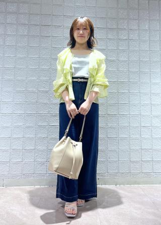 ・オフホワイトやサックスブルーは、同系色のボトムで軽やかにコーデすると◎。