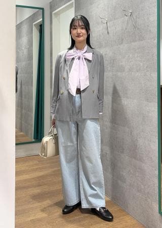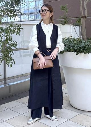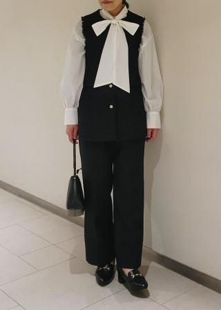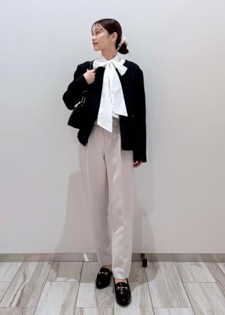 ・ボウタイを外して、パンツやスカートと合わせたオフィス・デイリーコーデにも。