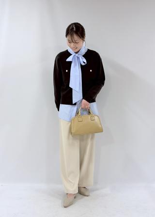 ・カーディガンやニットのインにレイヤードし、ボウタイや襟元をコーディネートのポイントに。