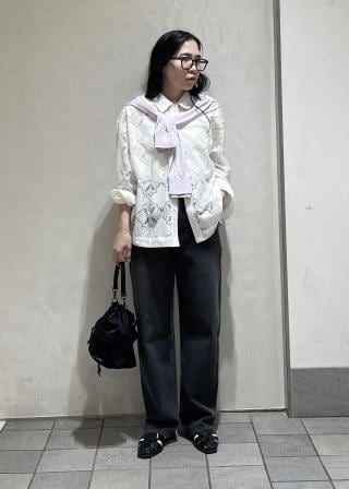 ・ビジュー付きデニムやチノパンなどカジュアルボトムと合わせて大人カジュアルに。