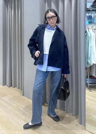 147cmの私にはやや大きめのシルエット。お尻がすっぽり隠れる着丈。羽織とてもスウェットやニットにインしても◎シワになりにくい加工とUVカット加工も嬉しいポイントです!