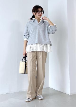・フレアパンツと合わせれば、ボリューム感のバランスが取りやすく、小柄な方にも取り入れやすいコーディネート。