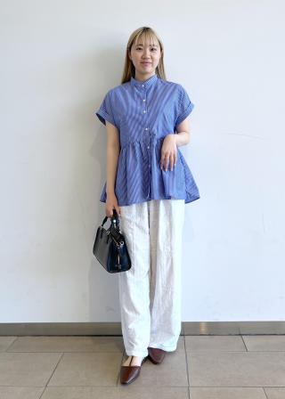 ・シャツ特有のきちんと感を残しつつ、柔らかな曲線を描くシルエットが、程よい抜け感とソフトな雰囲気を演出。