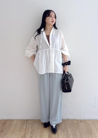 ・夏に向けてレース刺繍イージーパンツ(品番:GDS16170)との軽やかなコーディネートもおすすめ。