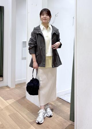 ・ミリタリーブルゾン(品番:GDL16070)のインナーとして取り入れれば、フェミニンさとカジュアル感をミックスした着こなしが完成。