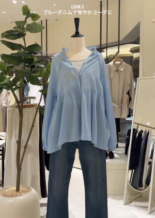 ・きちんと感のあるバンドカラーに、さりげないフリルディテールをプラス。