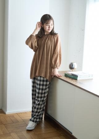 ・ボリュームスリーブがモダンなプルオーバーブラウス。