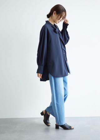 ・ゆったりシルエットがモダンな、ボウタイ付きデザイン。