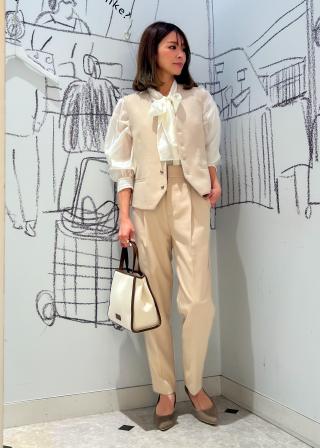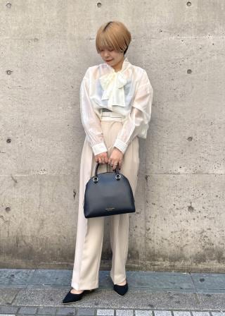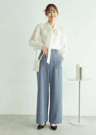 ・マットなシアー感が大人な印象にボウタイブラウス。