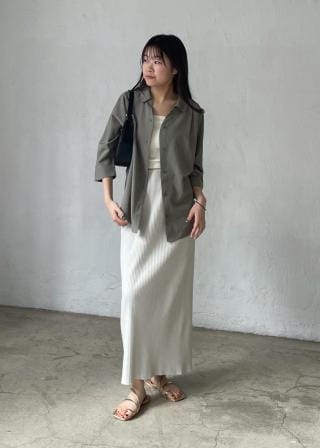 とろみのある生地感で、主張しすぎない襟がついているので首周りがスッキリ見えします。