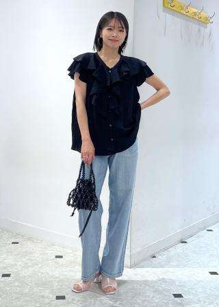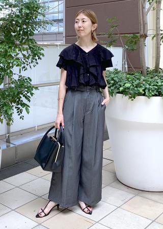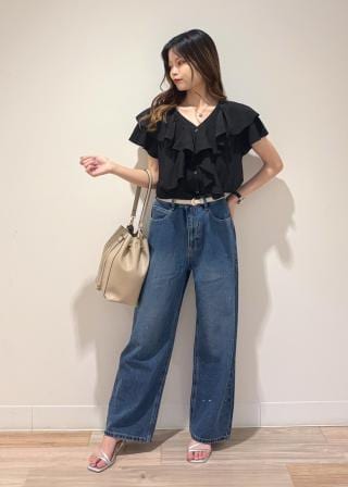 ・ラッフルがウエスト位置までなので、パンツやスカートに裾インしやすい。