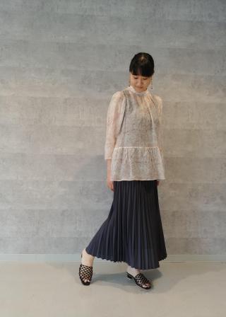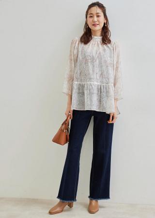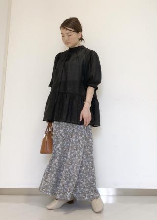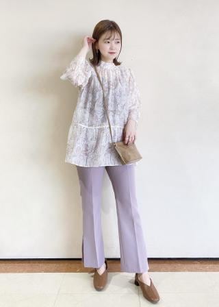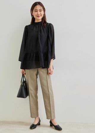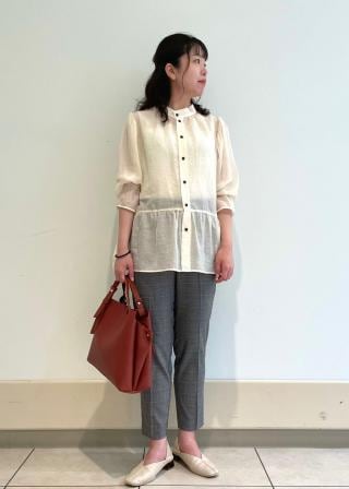 切り替えがありふんわりとしたブラウスなので、すっきり見せるならパンツ合わせがおすすめです。