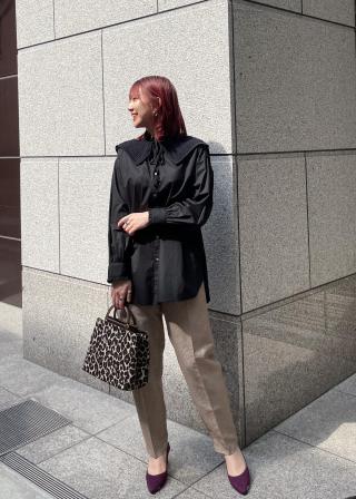 ・ワイドパンツに合わせたリラクシーな着こなしがおすすめ。