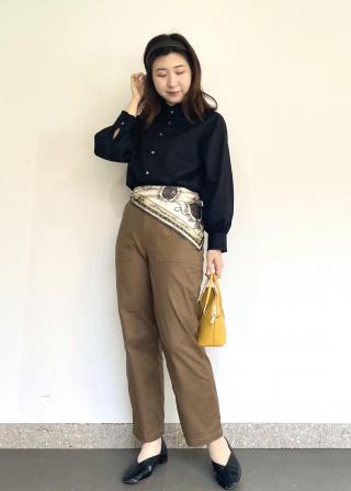 ・ハイウエストスカートにインして着こなすとクラスアップしたスタイルに。