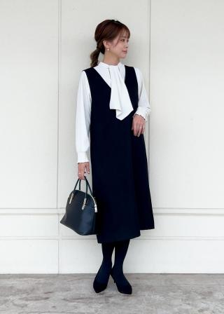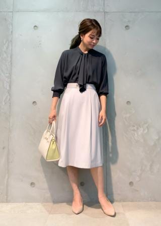 ボウタイを出す出さないの2wayで着れるので、気分や洋服に合わせて変えながら楽しみたいです。これにラク美パンツのブルーをあわせて春っぽく着てみたいと思います!