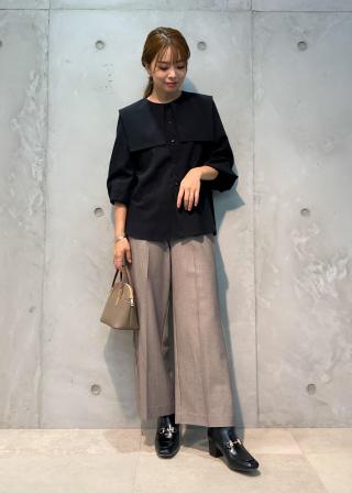 おすすめコーデ:ビッグカラーがポイントになってくれるので、1枚で着ても◎。ジャンスカやカーディガンに合わせて襟を出した着こなしがお勧めです。