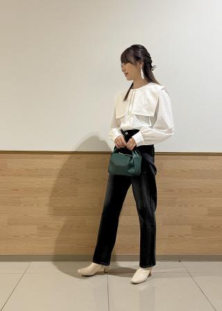 今の時期はニットやスウェットのインナーに、春先は一枚でも可愛いデザインブラウスです。