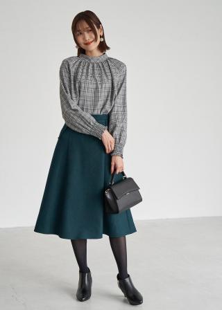 ・ネックと袖口のギャザーで女性らしいふんわりシルエットを演出。