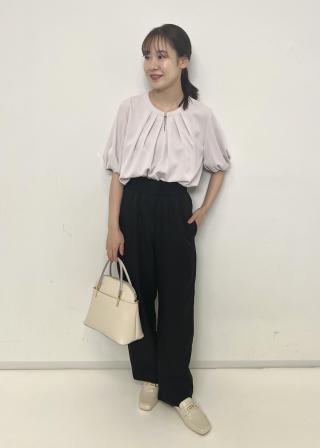 柔らかな生地感のブラウスで肌触りも良かったです。お袖は少しボリューム感がありフェミニンさもあるブラウスです。着丈は腰くらいまでの長さで、インしてもしなくてもすっきりお召し頂けます。