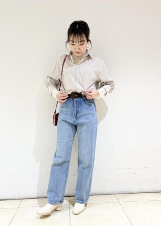 ・ハイウエストボトムにインするとメリハリのあるスタイルに。