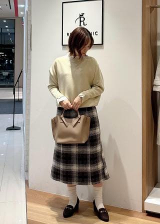 ・上から手持ちのベルトを巻けば、スカートにもバランス良く合わせられる。