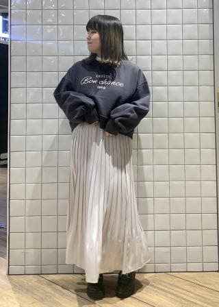 着丈が長いので細身のボトムにアウトスタイルで着回すのも◎