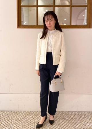 万能なブラウスはお仕事やセレモニーにオススメです。