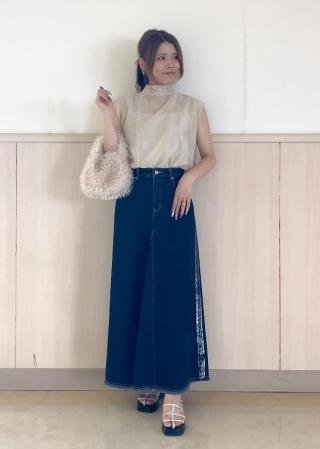 ・サックスブルーはホワイトやベージュ系のボトムと好相性。