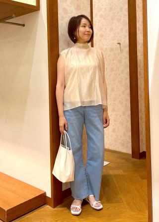 ・サックスブルーはホワイトやベージュ系のボトムと好相性。