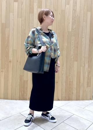 ・腰に巻いたり、斜めがけにしてチェックを雑貨感覚で取り入れることで一足早い秋スタイルに。